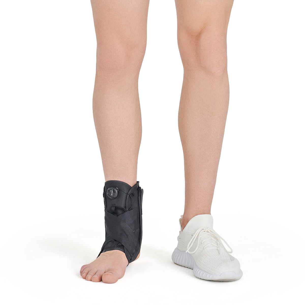 Осуществляет сильную фиксацию области лодыжек, голеностопного сустава, суставов предплюсны, уменьшает отечность в области голеностопного сустава и стопы, снижает нагрузки на голеностопный сустав. Шнуровка бандаж позволяет регулировать давление на мягкие ткани сустава. По назначению врача бандаж может заменять гипсовую повязку.