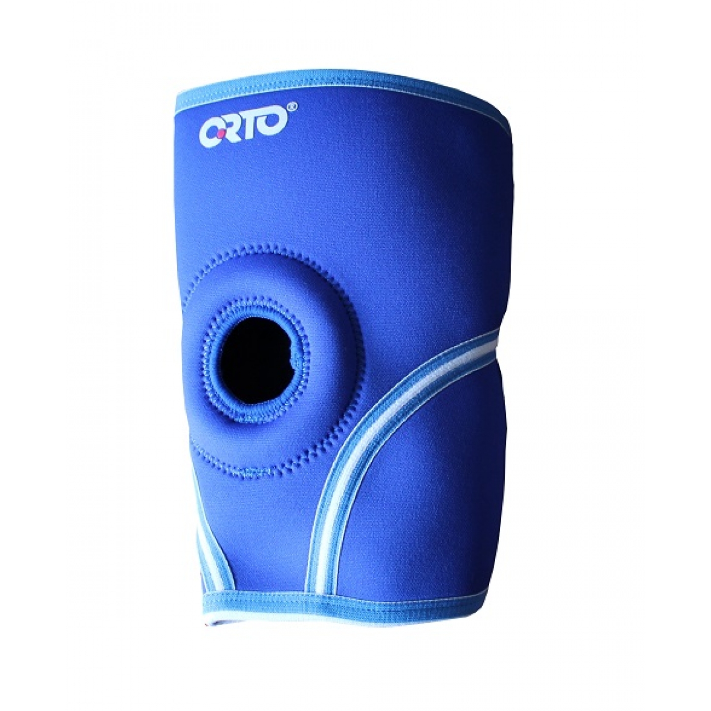 Циркулярный бандаж из неопрена со стабилизирующим силиконовым кольцом и отверстием над коленной чашечкой.