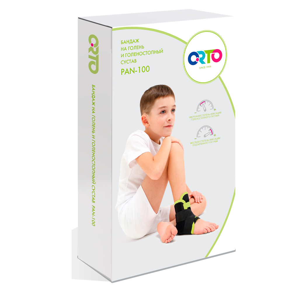 Голеностопный бандаж PAN-100 Orto с разъемной основой анатомической формы, передним клапаном (язычком) и вырезом для пятки.