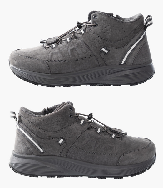 Передняя часть модели на 20% шире обычной обуви, что обеспечивает полную свободу для пальцев, даже при наличии деформаций. Модель серого цвета в стиле SPORT-CASUAL подходит для разных активностей в городе и на природе. Ботинки имеют формоустойчивый задник, который фиксирует пятку, убирает избыточную подвижность и формирует правильную биомеханику стопы. Вкладная ортопедическая стелька дарит дополнительный комфорт. Верх модели выполнен из натуральной кожи. Для профилактики натирания модель имеет бесшовную подкладку и мягкий кант в районе голени. Эластичная шнуровка с фиксатором для быстроты и удобства надевания. Легкая амортизирующая подошва из материала ЭВА имеет физиологичный подъем в области пятки, за счет чего распределяется нагрузка на стопы и суставы.