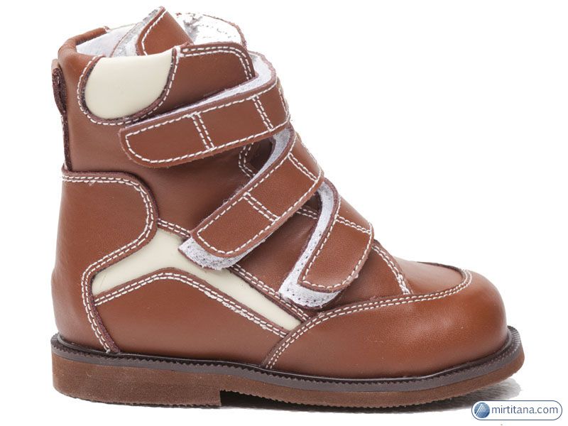 Верх из натуральной кожи, подкладка из натуральной кожи, подошва из EVА со вставками из пористой резины, застежка: тройная липучка, цвет: коричневый/бежевый, размеры: 19-35.