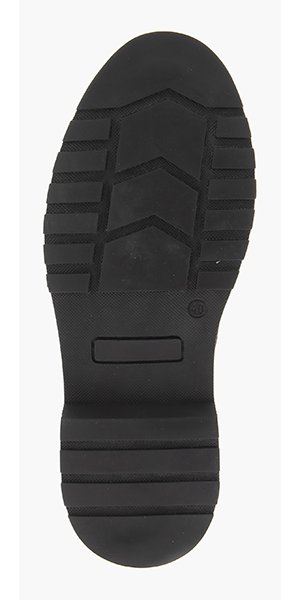 - Нескользящая подошва из полиуретана цельнолитого типа обеспечена небольшим подъемом в области пятки.