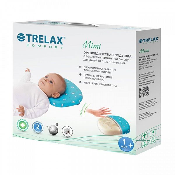 Ортопедическая подушка под голову TRELAX MIMI П27 с эффектом памяти предназначена для детей от 1 до 18 месяцев.