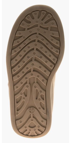 - По толстой и износоустойчивой подошве из полиуретана, имеющей подъем под пяткой и надежно защищающей от воды и холода.