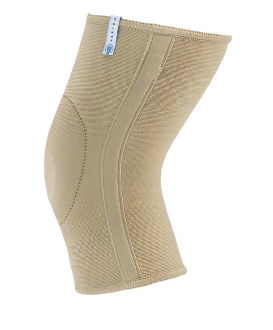Бандаж Orlett на колено эластичный с фиксирующей подушкой и металлическими спиральными ребрами жесткости (средней степени фиксации) фиксирует коленный сустав в период воспалительного заболевания