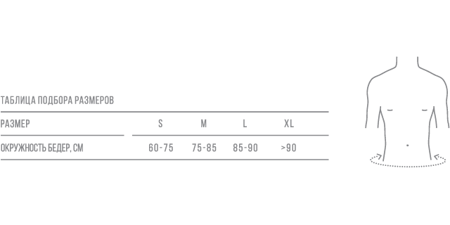 Для подбора размера сантиметровой лентой плотно, но не утягивая измеряется окружность бёдер.