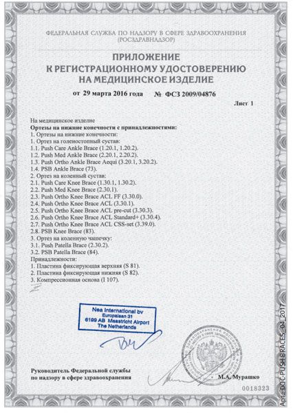 Назначения использования коленного ортеза Push care Knee Brace 1.30.1: