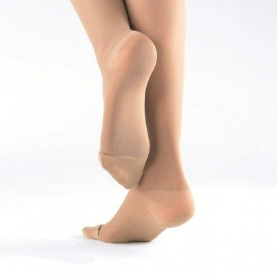 Компрессионный трикотаж создает эластичный каркас, препятствующий застою венозной крови, сохраняя необходимые условия для нормального функционирования вен, и предотвращает развитие отеков. Одним из необходимых условий возврата венозной крови является наличие перепада давления, распределение давления с уменьшением компрессии от лодыжки к бедру: I класс компрессии – 18-22 мм рт. ст., II класс компрессии – 23-32 мм рт. ст.