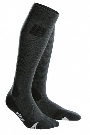Компрессионные женские гольфы CEP с шерстью мериноса для улучшения тонуса мышц и поддержания здоровья вен во время активного отдыха на природе.