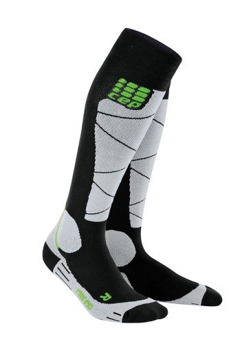 Компрессионные женские гольфы CEP, сохраняющие температурный баланс кожи и поддерживающие здоровье вен при занятиях горнолыжным спортом с шерстью мериноса.