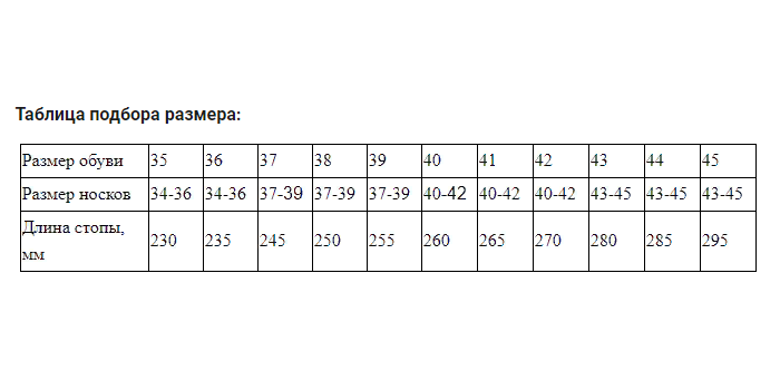 Таблица подбора размера: