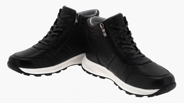 Полуботинок снабжен несколько большей чем обычно уплотненной задней частью, сформированной из термопласта. Она позволяет надежно фиксировать пяточную область в естественном положении, к тому же задник держит форму достаточно долгое время. Изнутри ботинки достаточно широки, а вставка из трикотажа отлично растягивается, что позволяет добавить в обувь орто-стельку, индивидуально изготовленную.