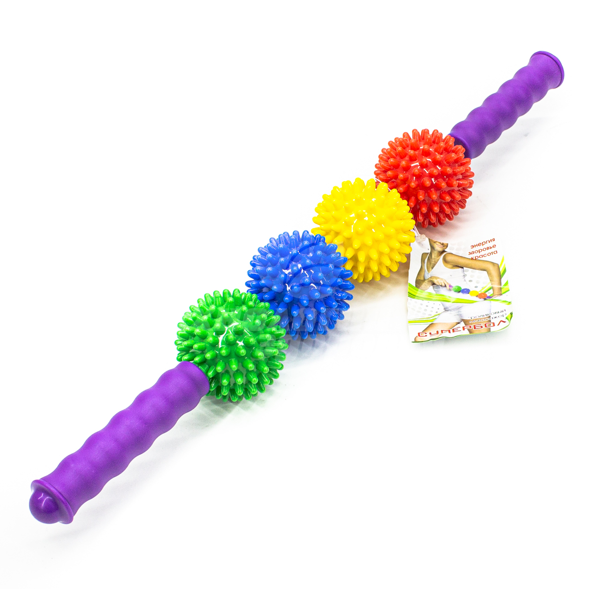 Отличительной особенностью массажера является правильное расположение массажных шаров для воздействия на все группы мышц, что способствует повышению эластичности мышц.