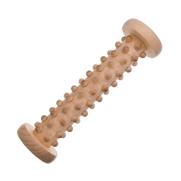 Роликовый деревянный массажер с круглыми шипами используется для эффективного самомассажа стоп. Может использоваться на других зонах тела.