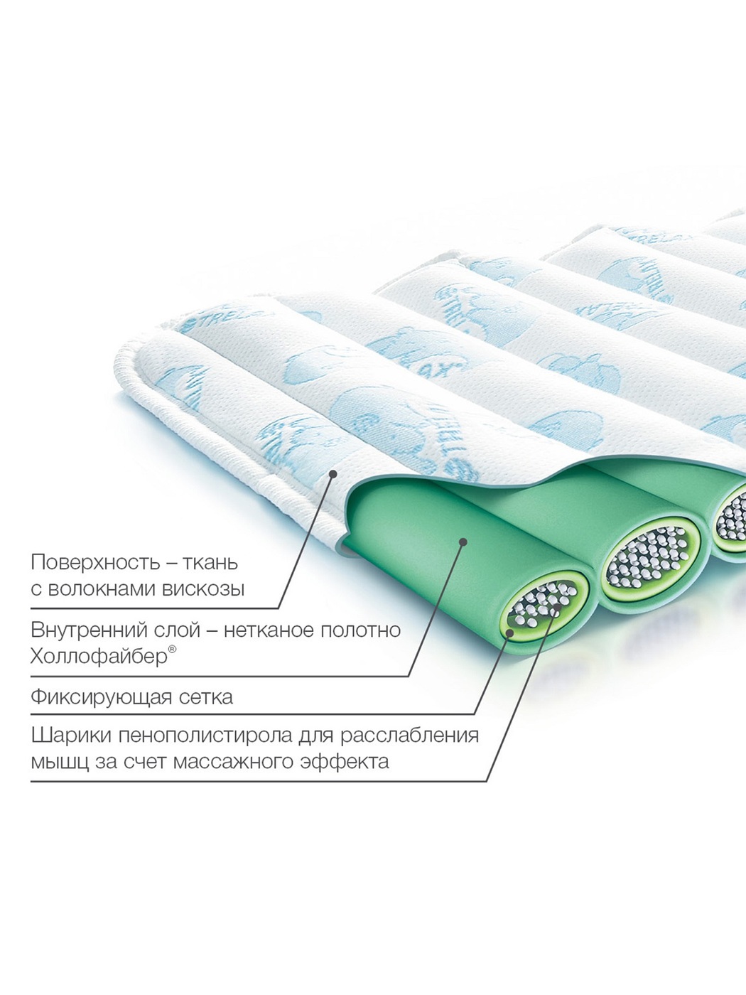 Изделие имеет волновую конструкцию из 11 валиков, которые отвечают за массажное действие и разгружает позвоночник во время перемещения вдоль матраса.