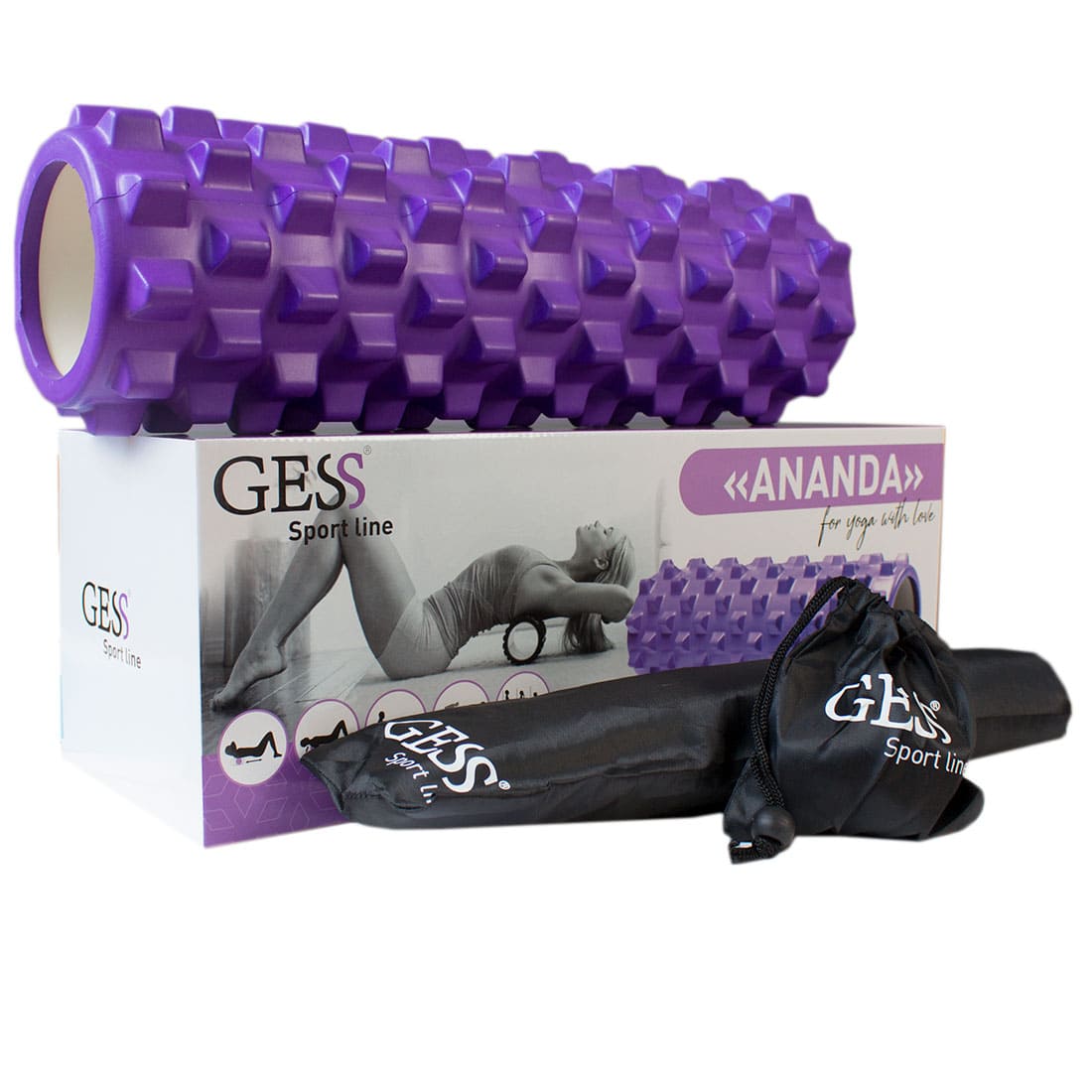 Набор для йоги и фитнеса ANANDA GESS-094. Валик, палка с роликами, мячик