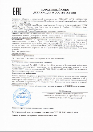 Оно обеспечит Вам оптимальный уровень тепла в любое время года: терморегулирующие вставки и «дышащий» экологичный наполнитель - холлофайбер - поддерживают комфортную температуру тела.