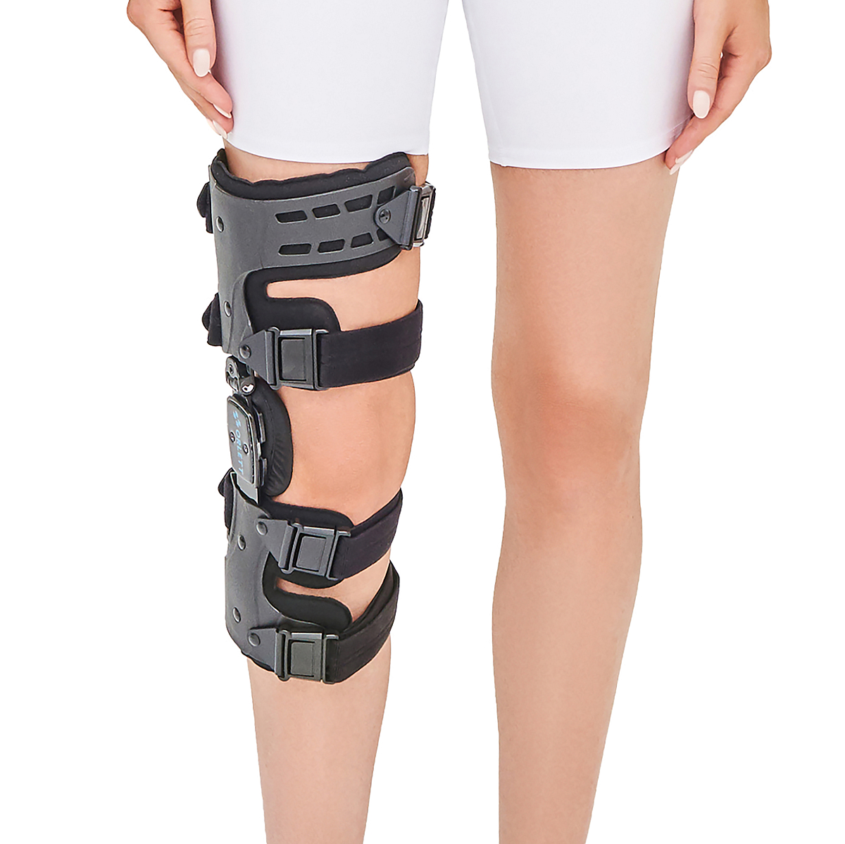 Ортез разгружает и снижает боль в мыщелке коленного сустава благодаря возможности однонаправленно воздействовать на ось коленного сустава. Варус-вальгусную регулировку можно осуществлять в пределах 30 градусов. Ограничение диапазона движения в коленном суставе можно осуществлять в пределах: разгибание – 0°, 10°, 20°, 30°, 40°; сгибание – 0°, 10°, 20°, 30°, 45°, 60°, 75°, 90°; иммобилизация – 0°, 10°, 20°,30°. Защищает от переразгибания и чрезмерного сгибания в суставе.