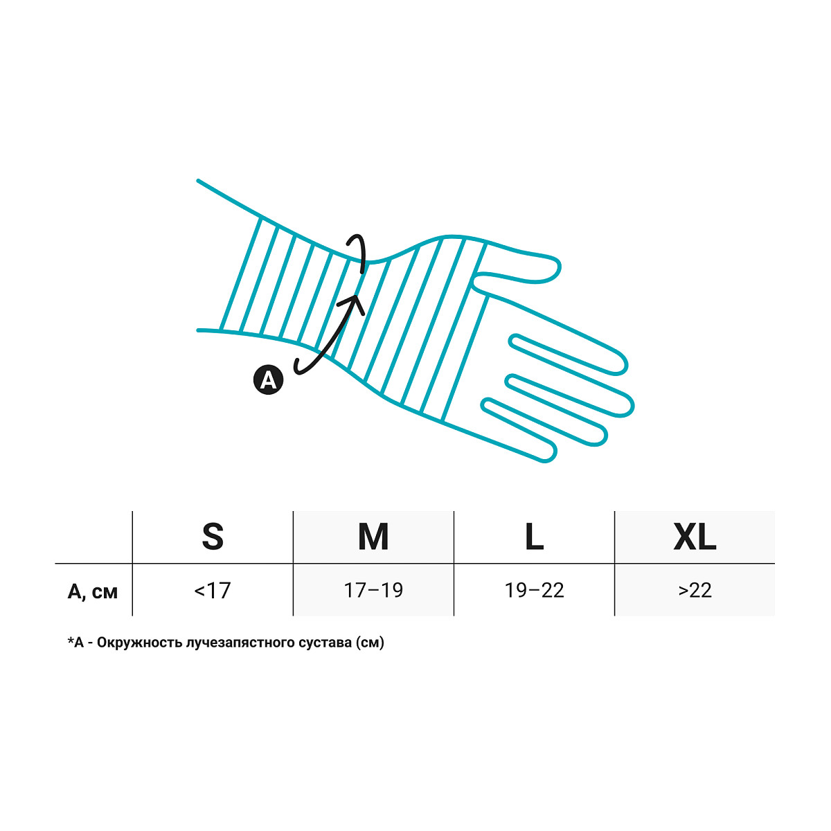 Для подбора ортеза ORLETT WRS-202 2 поколение сантиметровой лентой плотно, но не утягивая, измерить окружность лучезапястного сустава. Согласно полученным результатам выбрать ортез