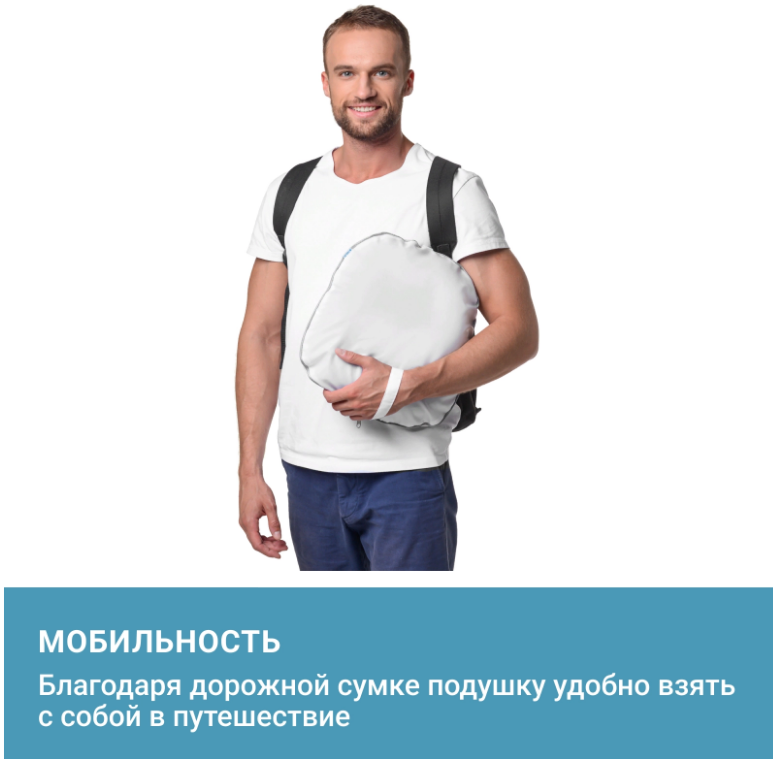 - Обеспечивает комфортную поддержку и физиологически правильное положение головы и шеи;
