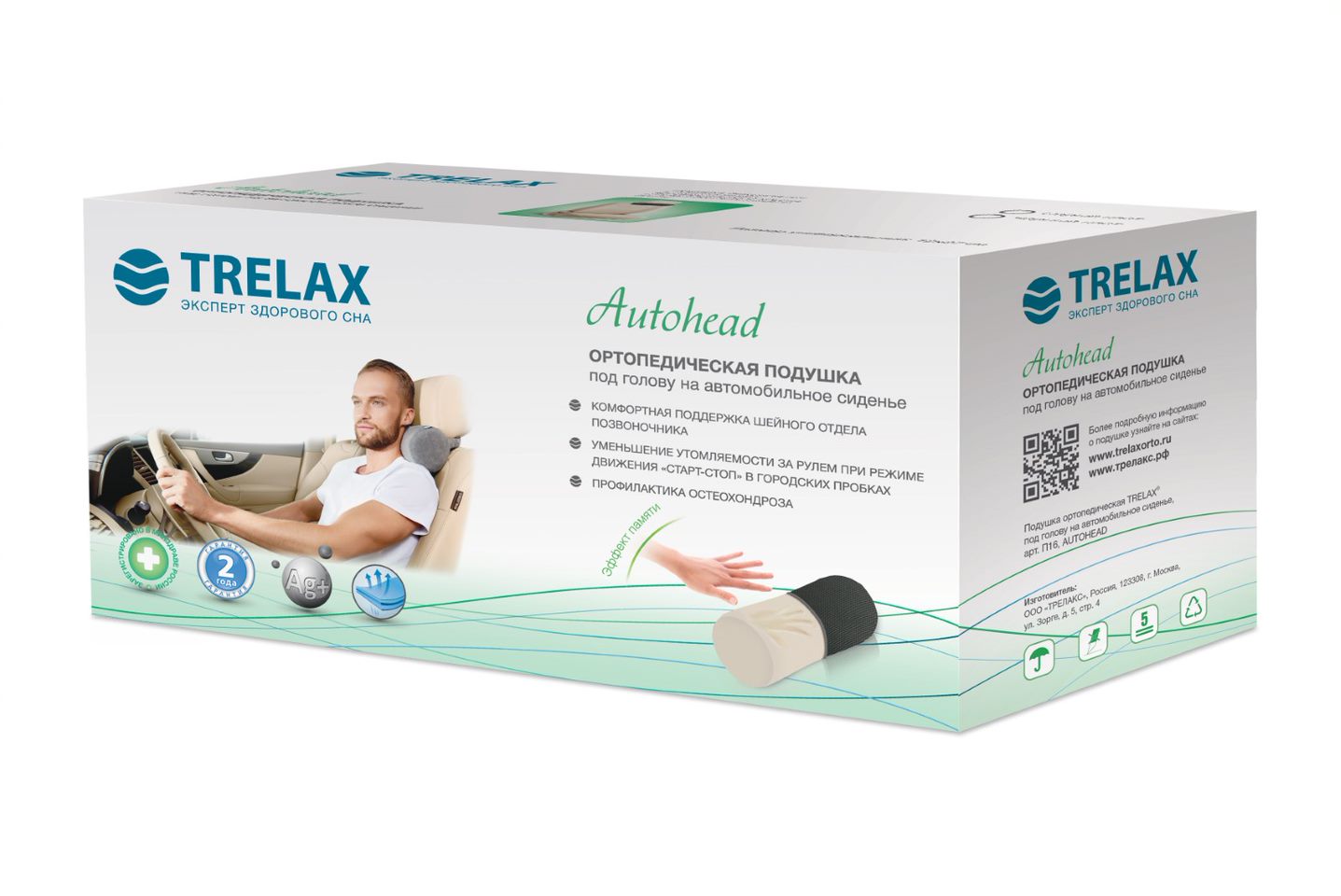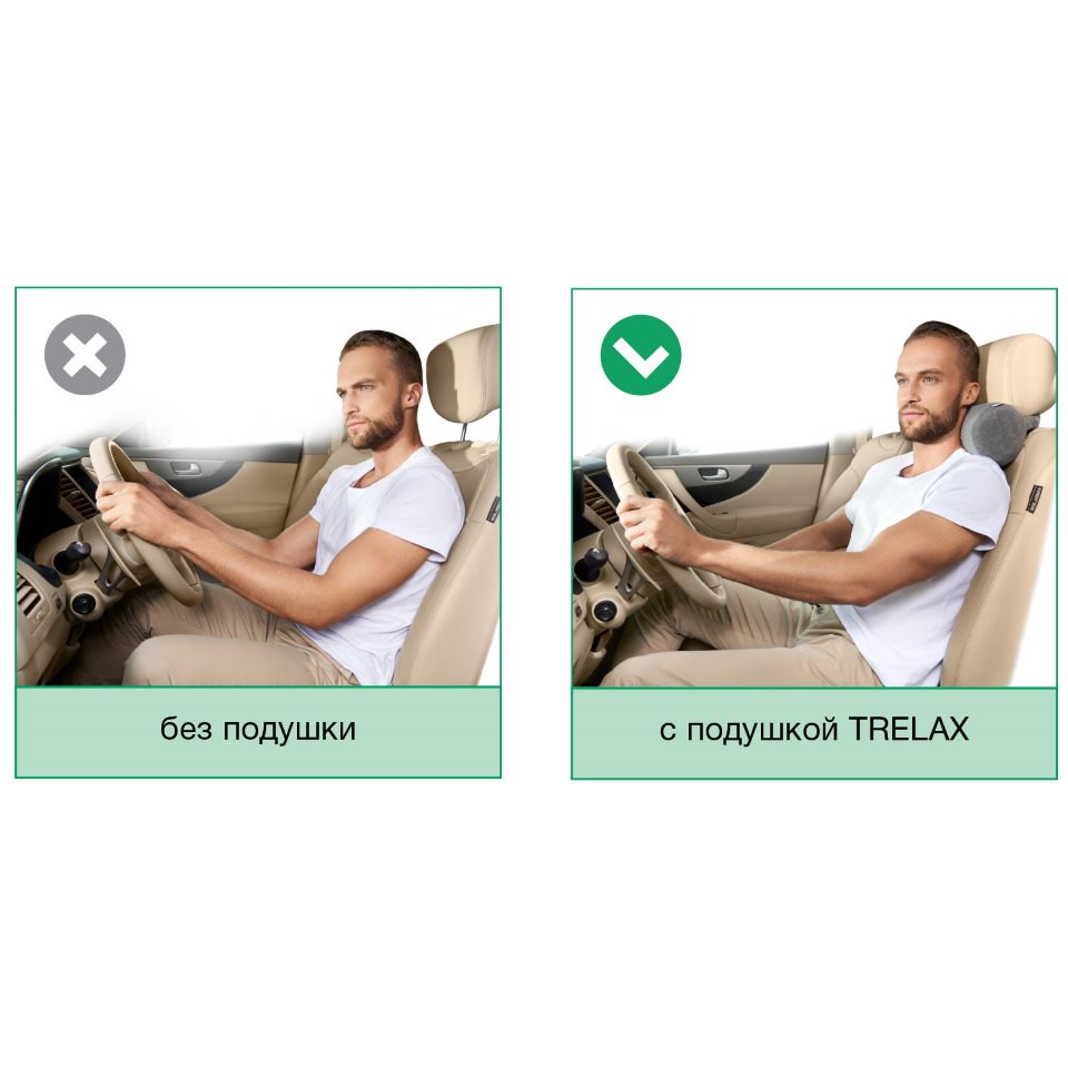 Ортопедическая подушка под голову TRELAX Autohead предназначена для повышения комфорта и качественной ортопедической поддержки во время вождения автомобиля.