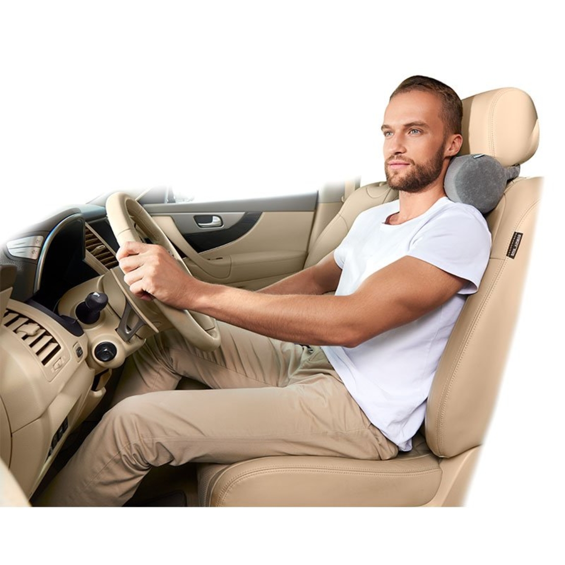 Эта подушка обеспечивает комфортную поддержку шейного отдела позвоночника и уменьшает утомляемость за рулем, особенно при режиме движения «старт-стоп» в городских пробках.
