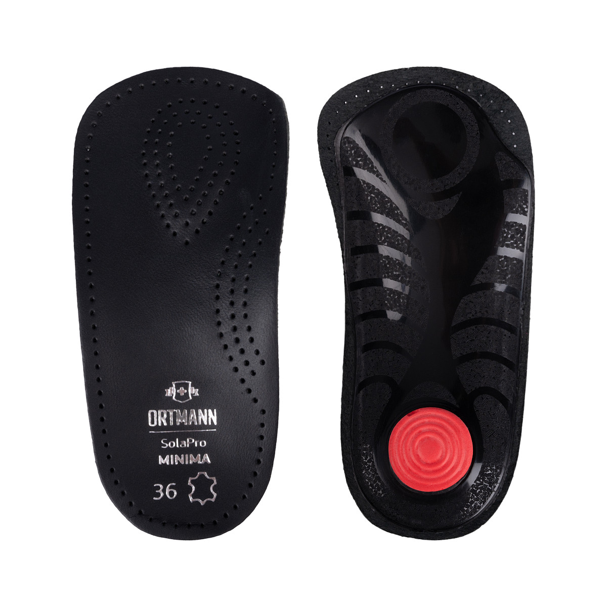 Кожаные ортопедические каркасные полустельки ORTMANN MINIMA станут незаменимым решением на каждый день для профилактики и лечения плоскостопия на начальных этапах развития. Это универсальная модель за счёт своей формы отлично подойдет для обуви с открытым мысом. При этом стелька сохранила все важные характеристики, необходимые для правильной разгрузки стопы на протяжении всего дня. Метатарзальный пелот равномерно распределяет нагрузку переднего отдела стопы, что особо значимо в том числе при поперечном плоскостопии и его осложнениях – «косточки» большого пальца стопы. Каркас продольного свода защищает и поддерживает стопу в правильном положении, а пяточный амортизатор снижает ударную нагрузку на пяточную область. Таким образом, вес тела при статической или динамической нагрузке равномерно распределяется по всей стопе.