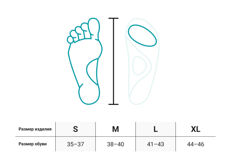 - Самоклеящееся покрытие обеспечивает устойчивое положение изделия в обуви.