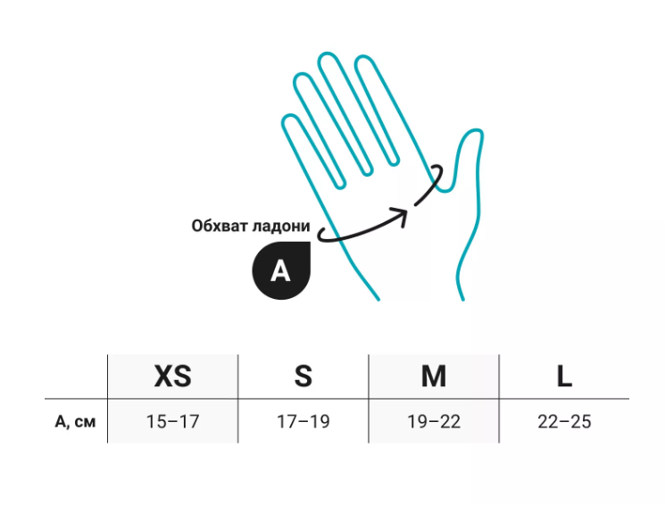Чтобы выбрать подходящий размер перчаток достаточно измерить обхват ладони в самой широкой ее части без большого пальца. Сантиметр при измерении должен располагаться выше косточек и не должен перетягивать ладонь: