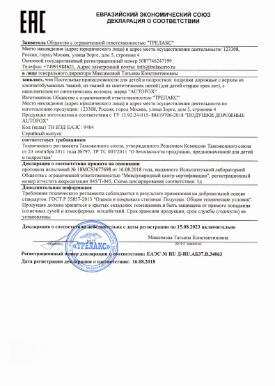 Подушка А305 детская дорожная от 2 до 4 лет комфортная autofox Trelax