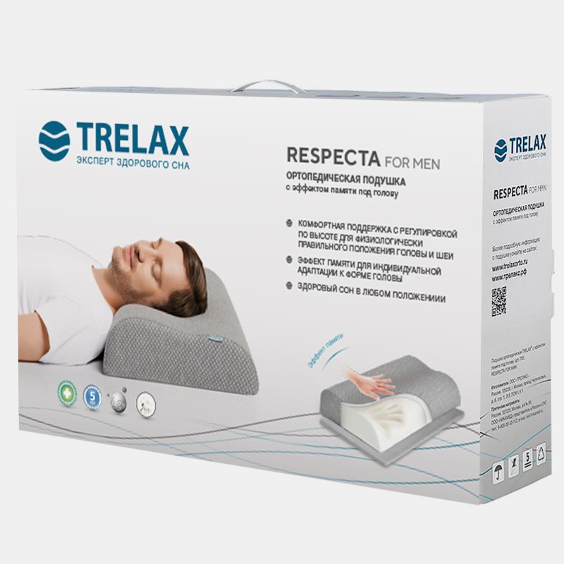 Подушка ортопедическая RESPECTA for man П05 Белая с эффектом памяти, Трелакс 60х38