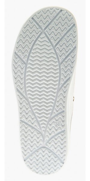 - Нескользящая подошва из ТЭП цельнолитого типа обеспечена небольшим подъемом в области пятки.
