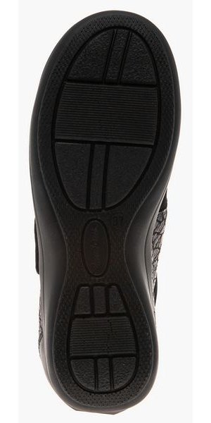 - Нескользящая подошва из полиуретана цельнолитого типа обеспечена небольшим подъемом в области пятки.