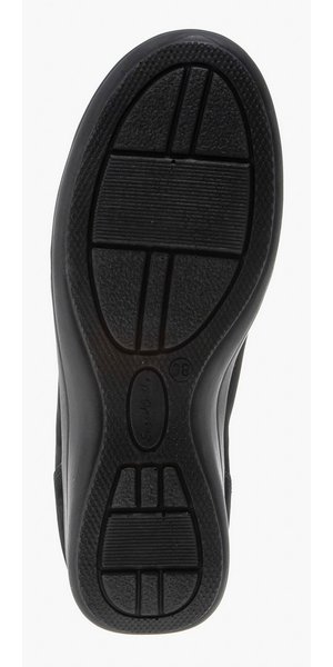 - Нескользящая подошва из полиуретана цельнолитого типа обеспечена небольшим подъемом в области пятки.