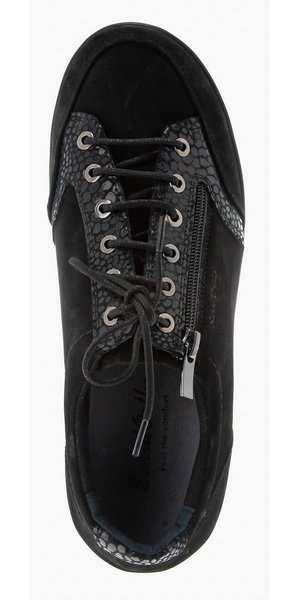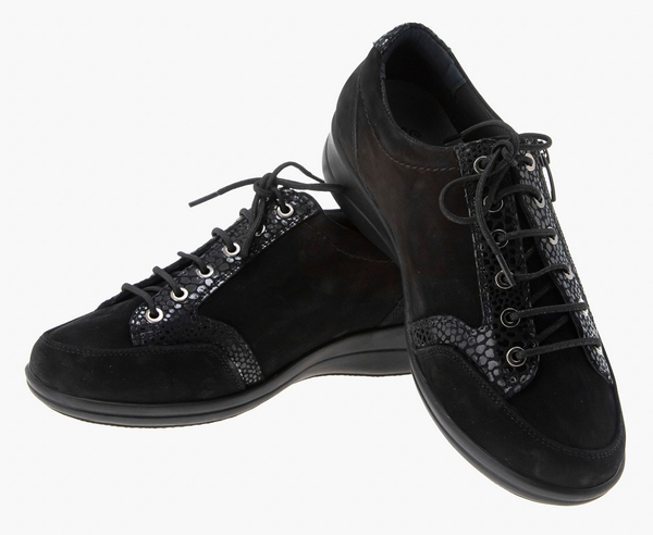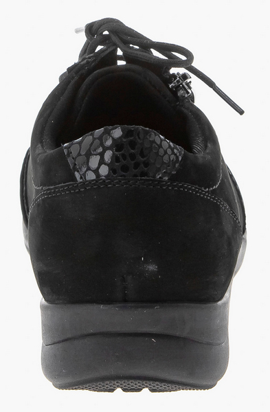 Полуботинок снабжен несколько большей чем обычно уплотненной задней частью, сформированной из термопласта. Она позволяет надежно фиксировать пяточную область в естественном положении, к тому же задник держит форму достаточно долгое время. Изнутри ботинки достаточно широки, а вставка из трикотажа отлично растягивается, что позволяет добавить в обувь орто-стельку, индивидуально изготовленную.