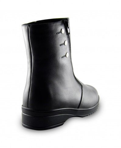 Лечебную обувь снабжают более плотным задником, имеющим специальную форму, его производят из термопласта. Уплотненная задняя часть не меняет форму даже спустя длительное время, что дает возможность надежно фиксировать пятку в естественным положении. В комплекте к таким сапогам предлагают стельку анатомического типа, она мягкая и ее можно вынимать.