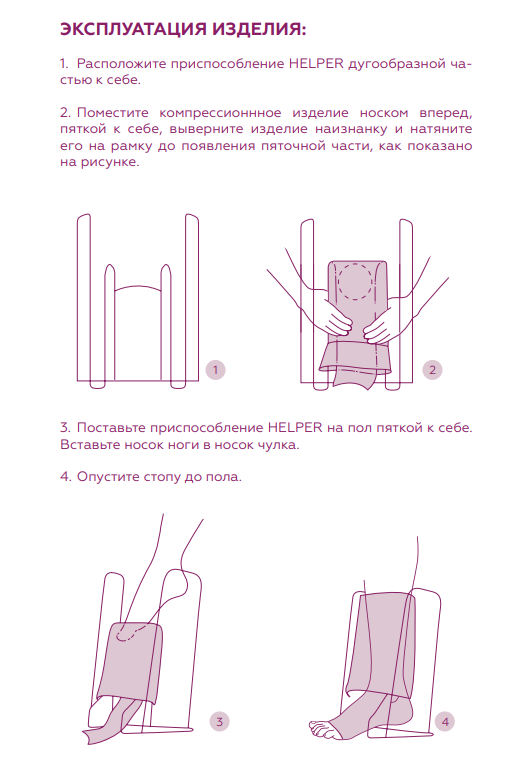 HELPER – это простое в применении приспособление, которое значительно упрощает процесс надевания компрессионных изделий, экономит силы и время, а также является оптимальным решением для пациентов с ограниченными двигательными возможностями.