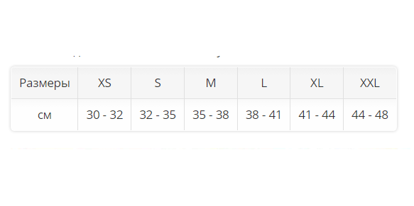 | см | 30 - 32 | 32 - 35 | 35 - 38 | 38 - 41 | 41 - 44 | 44 - 48 |