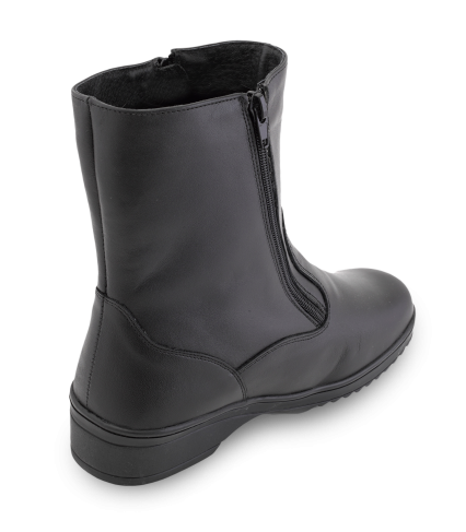 Лечебную обувь снабжают более плотным задником, имеющим специальную форму, его производят из термопласта. Уплотненная задняя часть не меняет форму даже спустя длительное время, что дает возможность надежно фиксировать пятку в естественным положении. В комплекте к таким сапогам предлагают стельку анатомического типа, она мягкая и ее можно вынимать.