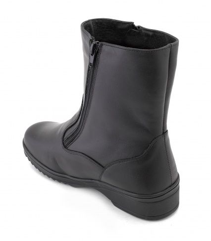 Лечебную обувь снабжают более плотным задником, имеющим специальную форму, его производят из термопласта. Уплотненная задняя часть не меняет форму даже спустя длительное время, что дает возможность надежно фиксировать пятку в естественным положении. В комплекте к таким сапогам предлагают стельку анатомического типа, она мягкая и ее можно вынимать.