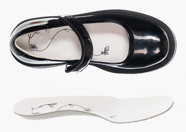 Туфли снабжены практичными и удобным ремешком, обеспеченными застежками типа "липучка". Они дают возможность дополнительно закреплять ножку, и обеспечивают удобство надевания.