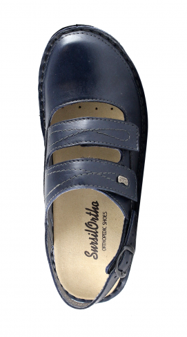 Туфли ортопедические синие, женские 25605-3 Sursil-Ortho имеют комфортную орто-стельку. Она сделана из коры пробкового дерева. Такую обувь нужно использовать женщинам, у которых передний отдел стопы деформирован, то есть при вальгусной деформации первого пальца, либо при молоткообразной деформации.