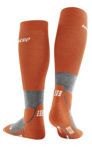 Компрессионные женские гольфы CEP с шерстью мериноса, сохраняющие оптимальный температурный баланс кожи и поддерживающие здоровье вен при отдыхе на природе.