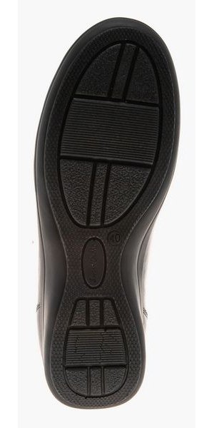 - Нескользящая подошва из полиуретана цельнолитого типа обеспечена небольшим подъемом в области пятки.